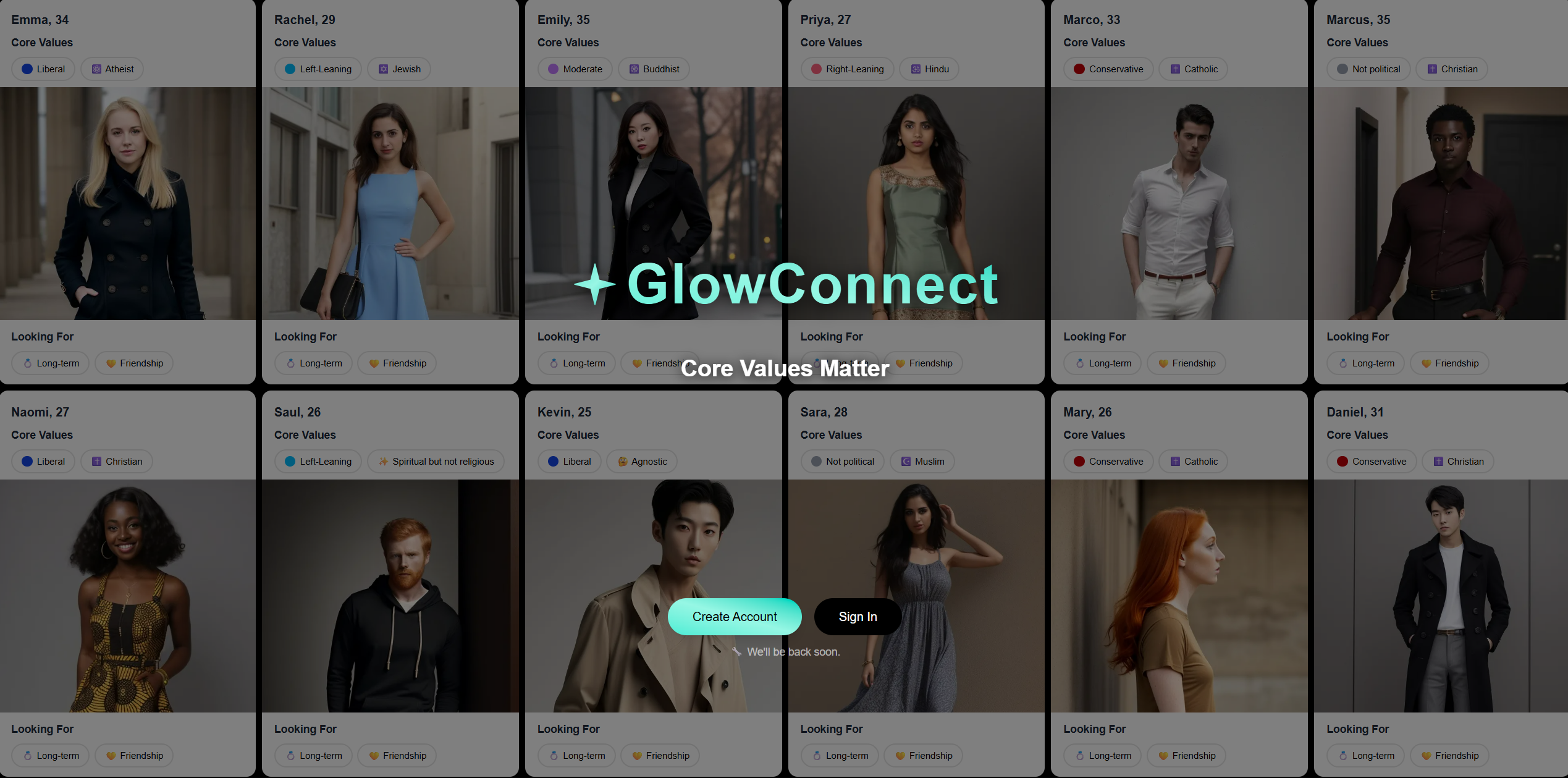You swipe for hours, match, talk for days — then find out you're incompatible. Core values are buried, if shown at all.